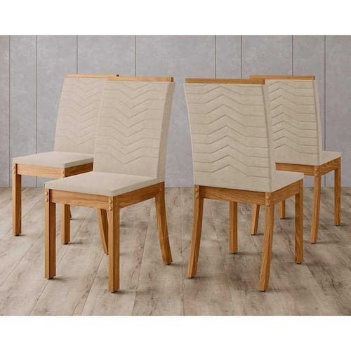 Cadeira Sala de Jantar Isa Kit 4 Un Nature/Veludo Light Linho - Henn