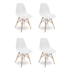 Especificações do Produto Estrutura: Polipropileno, Madeira Natural, Aço Reforçado Tipo de pés: Base em madeira Peso Suportado: Até 120 Kg Garantia: 90 dias contra defeito de fabricação Montagem: O produto vai montado, apenas parafusar a base Instruções de Limpeza: Utilizar um pano limpo e levemente úmido Você irá receber: 04 Cadeira - Entregue em: 01 Volume