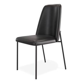 Cadeira Sala de Jantar Lior com Encosto Estofado Base Preta Couríssimo Preto - Desk Design