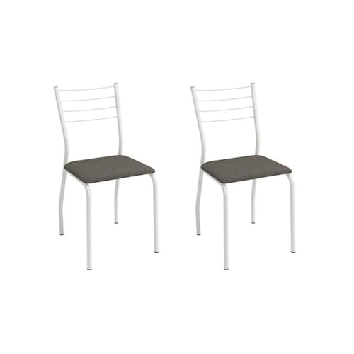 Cadeira Sala de Jantar Malta 2C140BR Aço Kit 2 Un Branco/Linho Escuro - Kappesberg