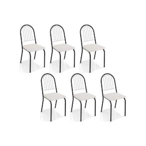 Abaixo segue os produtos do KIT: Cadeira Sala de Jantar Noruega C077 Kit 6 Un Preto Fosco/Courano Branco - Kappesberg