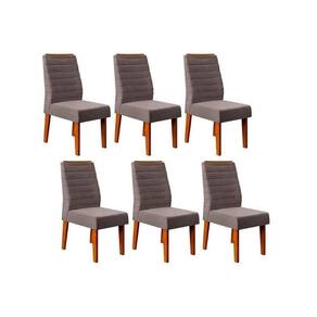 Cadeira Sala de Jantar Ondina Kit 6 Un Freijó/Veludo Lunar - DJ Móveis