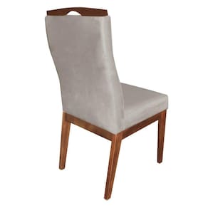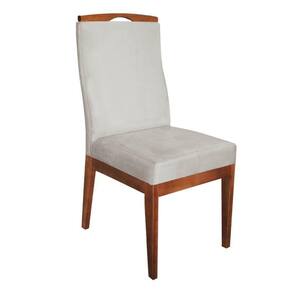 Cadeira Para Sala De Jantar Ricco Estofada Madeira Castanho Veludo Bege Claro - Ahazzo Móveis Cor Bege