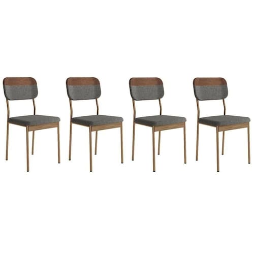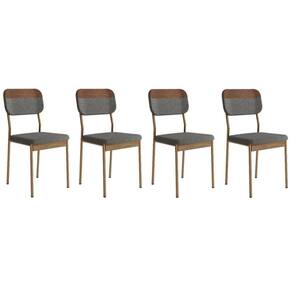 Cadeira Sala de Jantar Valle 1755 Aço Kit 4 Uni Rose/Linho Grafite/Courano Caramelo/Freijo - Carraro