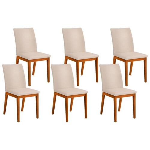 Cadeira Sala de Jantar Vitória Kit 6 un Ipe/Linho Neve - DJ Móveis