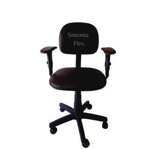 Cadeira Secretaria com braço de regulagem de altura e com regulagem base com rodízio corano preto Cadeira secretária de escritório - com regulagem de altura - base com rodízios - madeira