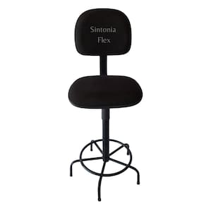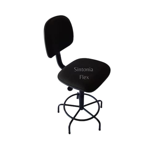 Cadeira secretaria caixa alta com base de ferro sem rodízio tecido preto Cadeira caixa - com regulagem de altura a gás - pés fixos- com sapata - prolongador de tamanho - madeira