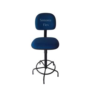 Cadeira secretaria caixa alta com base de ferro sem rodízio tecido azul Cadeira caixa - com regulagem de altura a gás - pés fixos- com sapata - prolongador de tamanho - madeira