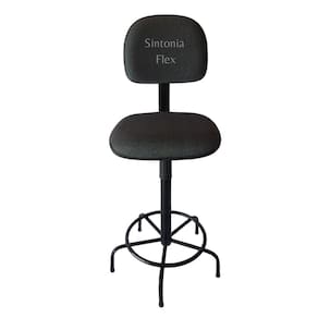 Cadeira secretaria caixa alta com base de ferro sem rodízio tecido cinza Cadeira caixa - com regulagem de altura a gás - pés fixos- com sapata - prolongador de tamanho - madeira