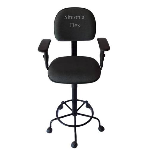 Cadeira secretaria caixa alta - braço com regulagem de altura - estrela de ferro com rodízio - aro tecido cinzapreto Cadeira caixa - aro para apoio dos pés - prolongador de altura - madeira reflorestada - espuma injetada - revestida em corano cipatex - bordas em pvc flexivel - pés de ferro com rodízio - pintura eletrostática epoxi - estrutura em aço com acabamento em pvc Altura do chão ao assento: Mínima 63 cm Máximo 75 cm Peso maximo recomendado: 110 kl Marca: Sintonia Flex