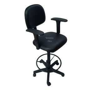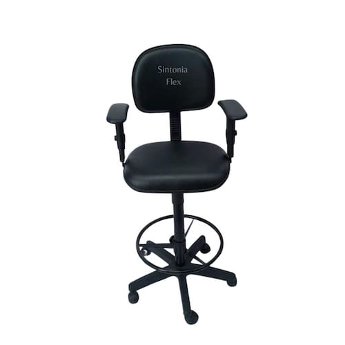 Cadeira secretaria caixa alta - braço regulagem - base de rodízio para recepção mercado balcão corano preto Cadeira caixa - com regulagem de altura a gás - estrela com rodízios - prolongador de tamanho - madeira