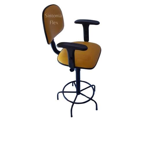 Cadeira caixa - aro para apoio dos pés - prolongador de altura - madeira reflorestada - espuma injetada - bordas em pvc flexivel - pés fixo - braço com regulagem - revestida em corano cipatex - pintura eletrostática Altura do chão ao assento: mínima 62 cm máximo 75 cm Marca: Sintonia Flex