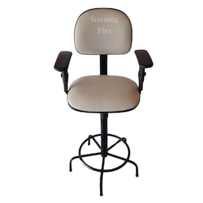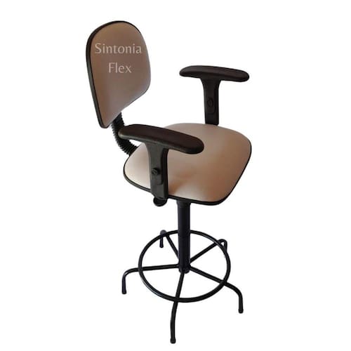 Cadeira caixa - aro para apoio dos pés - prolongador de altura - madeira reflorestada - espuma injetada - revestida em corano cipatex - bordas em pvc flexivel - pés fixo - braço com regulagem - pintura eletrostática epoxi Altura do chão ao assento: mínima 62 cm máximo 75 cm peso maximo 110 kl Marca: Sintonia Flex