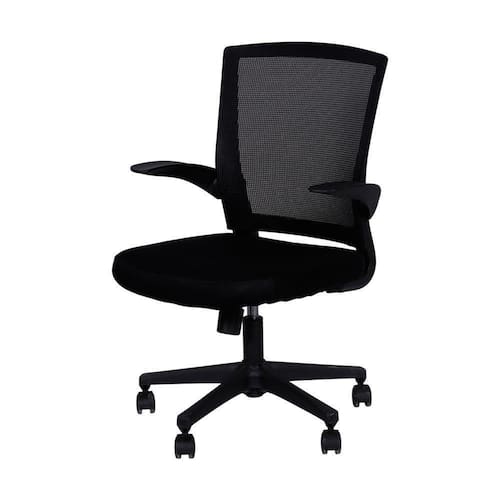 Seu material é composto pela base giratória em nylon, pistão a gás cromado, regulagem de altura, assento em tela mesh com os braços em nylon.