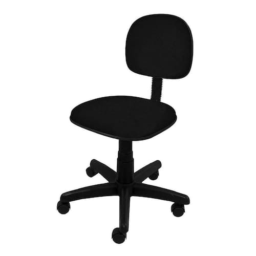 Cadeira Secretária Giratória - Tecido Preto Cadeira Secretária Giratória ideal para o seu escritório, home office, etc. Possui regulagem de altura do pistão à gás - Tecido J. Serrano Preto - Assento e Encosto Estofados - Espuma Injetada - Capacidade de Peso até 110Kg - A - 0,93 cm / L - 0,55 cm / P - 0,55 cm - : 6 meses, já incluindo os 90 dias previsto em Lei Marca: Não Informado
