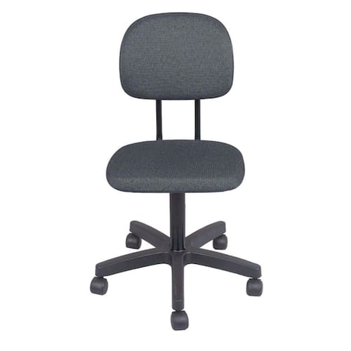 Cadeira secretaria giratoria tropical com L duplo o pistão e fixo não tem regulagem tecido cinza/preto Cadeira secretaria giratoria tropical - com L duplo - sem regulagem de altura - madeira reflorestada - espuma injetada , revestida em tecido j. Serrano anti chamas - bordas em pvc flexivel - com rodízios - tintura eletrostatica Altura do chão ao assento máximo e mínimo 43cm Marca: Sintonia Flex