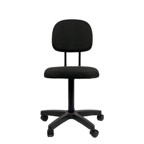 Cadeira secretaria giratoria tropical com L duplo o pistão e fixo não tem regulagem tecido preto Cadeira secretaria giratoria tropical - com L duplo - sem regulagem de altura - madeira reflorestada - espuma injetada , revestida em tecido j. Serrano anti chamas - bordas em pvc flexivel - com rodízios - tintura eletrostatica Altura do chão ao assento máximo e mínimo 43cm Marca: Sintonia Flex