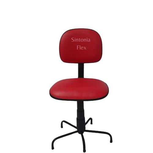 Cadeira secretaria pra costureira com pé da base menor corano vermelho Cadeira secretária - regulagem de altura a gás - pés em aço fixo - madeira reflorestada - espuma injetada - bordas em pvc flexivel - pintura eletrostática epoxi Marca: Sintonia Flex
