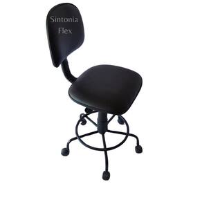 Cadeira secretaria com regulagem de altura - base de ferro - rodízio e apoio de pé corano preto Cadeira secretária de escritório - com regulagem de altura a gás - base de ferro com rodízios - madeira