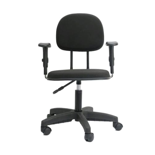 Cadeira secretaria com regulagem de altura com braço L duplo base com rodízio tecido preto Cadeira secretaria caixa alta - braço com regulagem - base com rodizio - espuma injetada - madeira reflorestada - bordas em pvc flexivel - revestido em tecido j. Serrano anti-chama