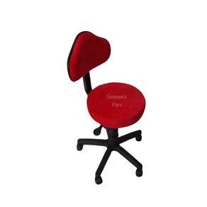 Cadeira secretaria Verona com regulagem de altura a gás - base com rodízio suede vermelho Cadeira secretaria mocho podóloga estética - regulagem de altura a gás - espuma injetada , revestida em tecido vermelho - bordas em pvc flexivel - com rodízios. Altura do chão ao assento máximo 53cm mínimo 43cm Marca: Sintonia Flex