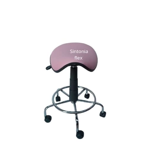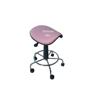 Cadeira sela - regulagem de altura a gás - espuma injetada , revestida em corano cipatex - bordas em pvc flexivel - apoio para os pés - base cromada - com rodízios. altura do chão ao assento máximo 53cm mínimo 43cm Marca: Sintonia Flex