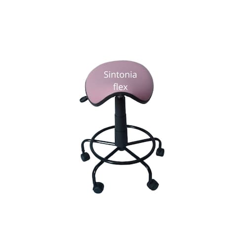 Cadeira sela - regulagem de altura a gás - espuma injetada , revestida em corano cipatex - bordas em pvc flexivel - apoio para os pés - pintura eletrostática - com rodízios.