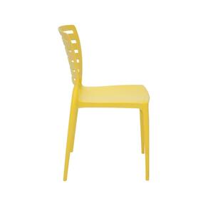 A Cadeira Sofia Amarela Tramontina é feita de polipropileno e fibra de vidro.