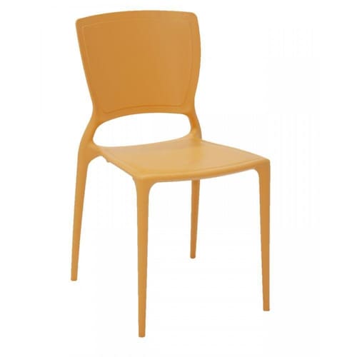 Cadeira Sofia Encosto Fechado Laranja Tramontina encaixa em ambientes fechados e abertos.
