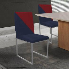 Cadeira Office Stan Duo Sala De Jantar Industrial Ferro Cinza Sintético Azul Marinho E Vermelho - Ahazzo Móveis Cor Vermelho
