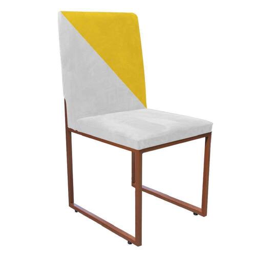 Cadeira Office Stan Duo Sala De Jantar Industrial Ferro Bronze Sintético Branco E Amarelo - Ahazzo Móveis Cor Amarelo