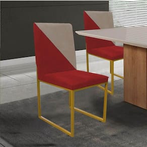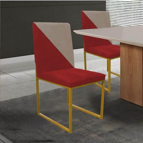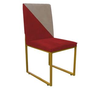 Cadeira Office Stan Duo Sala De Jantar Industrial Ferro Dourado Sintético Vermelho E Bege - Ahazzo Móveis Cor Bege