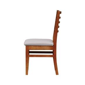 Cadeira Tiê Madeira Maciça Encosto Ripado - Amêndoa Linho Bege