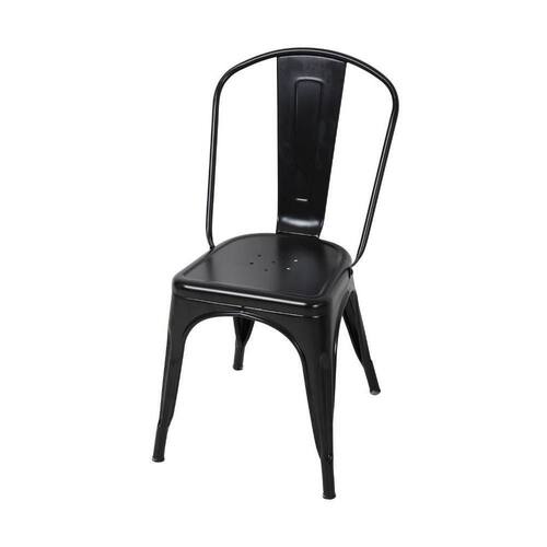 Cadeira Fixa Design Tolix Metal Preta Conhecida popularmente como ?Cadeira Francesinha?, tem grande influência no mercado europeu devido ao seu elegante design retrô. O modelo clássico idealizado pelo francês Xavier Pauchard nos anos 20 foi resultado de seu experimento pioneiro da fabricação de móveis com metal galvanizado.