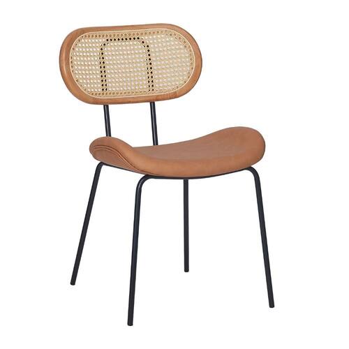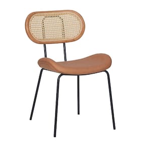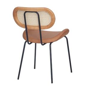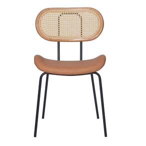 Metal, Madeira, PU e RattanNossa Cadeira Toscana Base Preta - PU Caramelo é uma peça que combina um design moderno com um toque de charme retrô. O assento possui um formato ergonômico e é revestido em PU em um tom caramelo acolhedor, sugerindo conforto e um toque de sofisticação natural. O encosto oval apresenta uma estrutura de madeira clara que emoldura um detalhe em telinha rattan trançado, adicionando uma textura natural e um apelo visual único à peça.
