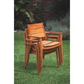 Madeira Muiracatiara.Acabamento com novo Eco Clear que protege e valoriza as fibras da madeira.As cadeiras vem montadas.