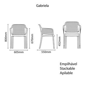 Cadeira Tramontina Gabriela Em Polipropileno E Fibra De Vidro Branco Tramontina Cadeira Tramontina Gabriela em Polipropileno e Fibra de Vidro Branco Tramontina - Momentos felizes entre os amigos, uma boa conversa e um ambiente agradável. Pra completar tudo isso só mesmo o conforto da Cadeira Tramontina Gabriela em Polipropileno e Fibra de Vidro, da linha Summa. Ela tem toda a força e resistência que você precisa, pois suporta uma carga estática de até 182 Kg. Seu design é diferenciado e pode ser empilhada para maior praticidade. Garanta já esse item essencial para os animados bate-papos com as pessoas que você gosta.OrientaçõesPeso Máximo Recomendável: 182 kg Produzido em Polipropileno e Fibra de Vidro Empilhável até: 04 peçasObservaçõesNão subir no assento. Respeite o limite máximo de peso. Transporte sempre com cuidado. Retire o produto do ambiente sempre que for higienizar o piso; alguns materiais de limpeza podem causar danos em contato com a peça. Prolongue a vida útil do produto mantendo-o guardado quando não estiver em uso. Longas exposições ao sol podem provocar manchas ou perda da cor do produto. Lavar manualmente com água e sabão neutro. Não fazer uso de produtos químicos e/ou abrasivos. Não usar máquina do tipo lava jato. Para evitar manchas, após a lavagem, secar com pano seco e macio.Características GeraisEAN137898683602177DUN1417898683602174NCM9401.80.00Peso Líquido4,0000 kg.Peso Bruto4,7750 kg.Metragem0,277233 m.Dimensões Embalagem (Compr. X Larg. X Alt.)550x 620x 813 mm.Dimensões Produto (Compr. X Larg. X Alt.)550x 605x 800 mm.Cor 1FFFFFF Hexa Características Gerais do Produto: - Cor: Branco Garantia: - 1 Ano