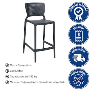 CADEIRA TRAMONTINA SAFIRA ALTA RESIDÊNCIA EM POLIPROPILENO E FIBRA DE VIDRO GRAFITE 92128007 Marca: Tramontina Modelo: Safira Alta Residência Em Polipropileno E Fibra De Vidro Grafite 92128007