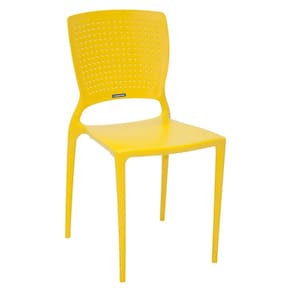 A linha de cadeiras Safira é uma irmã mais nova já conceituada linha Sofia. Nessa versão as cadeiras estão completas: robustas, bonitas e mais modernas. Para agradar a todos os públicos a linha Safira tem duas versões: Safira com braços e Safira sem braços. A Cadeira Tramontina Safira Amarela sem Braços em Polipropileno e Fibra de Vidro da linha Summa é leve, resistente e com design diferenciado. Para evitar acidentes, não se apoie nas duas pernas traseiras ou suba no acento. Submetida a rigorosos testes de qualidade, a cadeira resiste a uma carga estática de até 182 kg. Possui um ano de garantia.