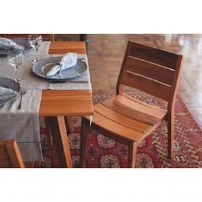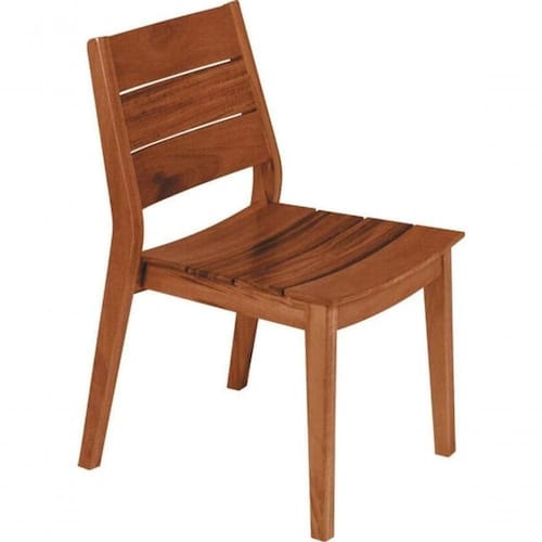 Madeira Muiracatiara. Acabamento com Eco Clear que protege e valoriza as fibras da cadeiras vem montadas.Empilhaveis