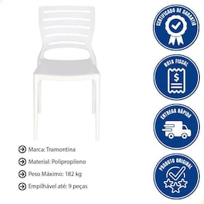 - Para garantir ambientes modernos e versáteis, conte com a cadeira Tramontina Sofia em polipropileno e fibra de vidro branca com encosto horizontal. - Com capacidade para 182 quilos, ela tem produção em polipropileno e fibra de vidro e é uma cadeira altamente resistente e durável. - Seu design moderno e versátil, tem inspiração em uma famosa Infanta, que é filha mais nova do atual rei da Espanha e de sua rainha consorte e fará toda a diferença na decoração da sua casa!