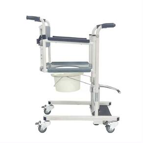 Vantagens: - cadeira com elevação manual através de alavanca de bombeamento hidráulico na parte inferior; - transporta o paciente entre diferentes lugares como cama, sala de estar, banheiro com facilidade e segurança; - melhora a qualidade de vida de pessoas com limitações de mobilidade; - comadre integrada que proporciona dignidade e conforto aos usuários - suporta até 135kg -garante estabilidade e segurança durante o uso.