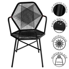 Cadeira Tropicália Aço Fibra Sintética Gourmet Acesse Móveis Preto A Cadeira Tropicalia combina design sofisticado e resistencia para compor ambientes com estilo e conforto. Produzida em aco com pintura eletrostatica e fibra sintetica trancada a mao, e ideal para areas gourmet, varandas cobertas, ediculas e espacos de lazer, oferecendo leveza, praticidade e visual elegante para o seu ambiente. Alem do visual refinado, a estrutura metalica proporciona alta durabilidade, enquanto a fibra sintetica e facil de limpar e mantem o conforto mesmo em dias quentes.