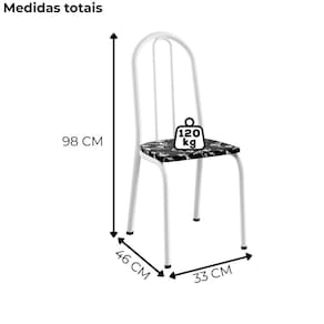 Cor: Multicolorido | Tonalidade: Multicolorido | Altura: 98 cm | Largura: 33 cm | Cômodo indicado: Cozinha | Material da estrutura: Aço | Produto: Cadeira Tubular | Peso do produto: 5 | Inclui manual de montagem: Sim | Requer montagem: Não | Profundidade do assento: 46 cm | Quantidade de cadeiras por conjunto: 2 | Cor: Preto Flor