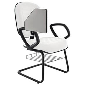Cadeira Universitária Diretor com prancheta escamoteável e porta livros para Auditório, Escolas e Faculdades Branco Linha Blenda – Cor: Branco Cor: Branco - Marca: Design Office Móveis - Modelo: Cadeira Universitária Diretor para Escolas e Faculdades com prancheta escamoteável e porta livros