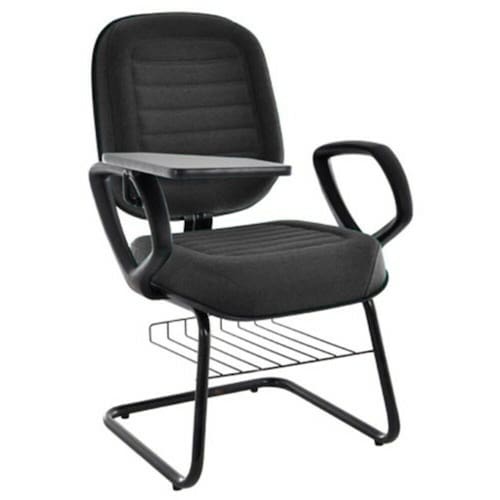 Cadeira Universitária Diretor com prancheta escamoteável e porta livros para Auditório, Escolas e Faculdades, Preto Linha Blenda – Cor: Preto Tonalidade da Cor: Preto - Marca: Design Office Móveis - Modelo: Cadeira Universitária Diretor para Escolas e Faculdades com prancheta escamoteável e porta livros
