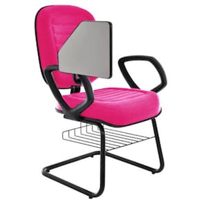 Cadeira Universitária Diretor com prancheta escamoteável e porta livros para Auditório, Escolas e Faculdades Rosa Pink Linha Blenda – Cor: Rosa Pink Cor: Rosa Pink - Marca: Design Office Móveis - Modelo: Cadeira Universitária Diretor para Escolas e Faculdades com prancheta escamoteável e porta livros