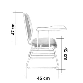 Descrição: • Assento e Encosto estofado em espuma Injetada; • Capacidade de Peso de até 110 kg por lugar; • Pintura Epóxi; • Tecido J. Serrano; • Prancheta em MDP.