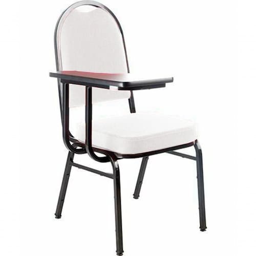 Peso da cadeira: 5kg - Empilhável com até 8 cadeiras sem a prancheta