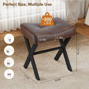 - ?Estrutura resistente? Este banquinho para penteadeira possui uma base de madeira maciça de 12 mm de espessura com pernas de metal resistentes com estrutura X, suportando até 136 kg. Os pés de nivelamento ajustáveis fornecem estabilidade excepcional para desempenho durável e sem preocupações.